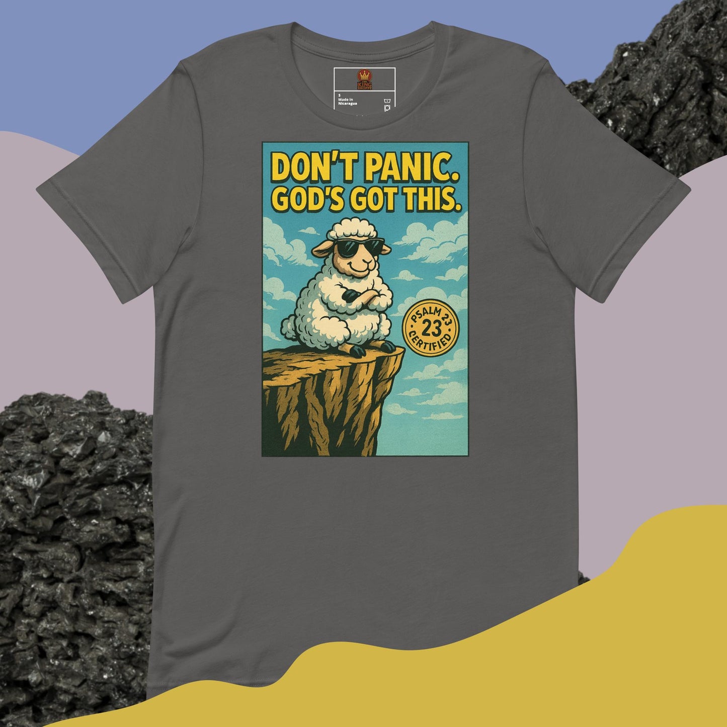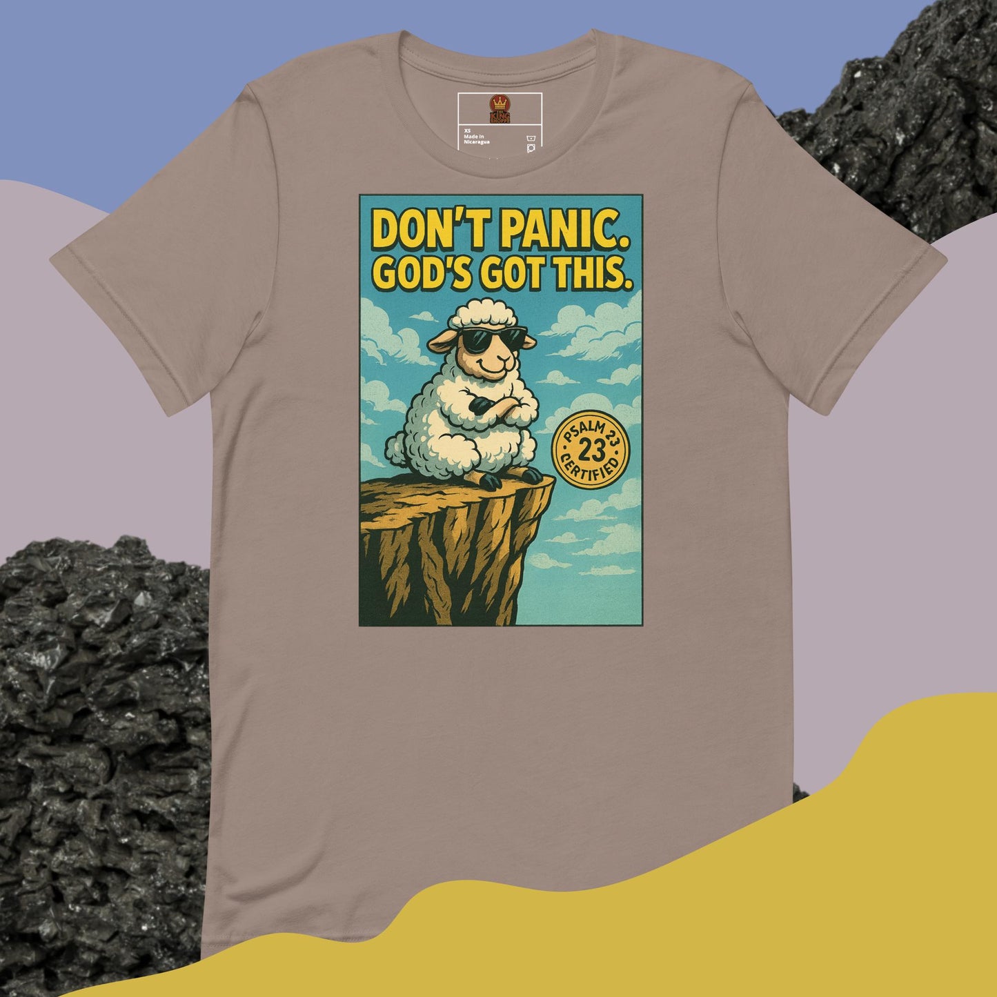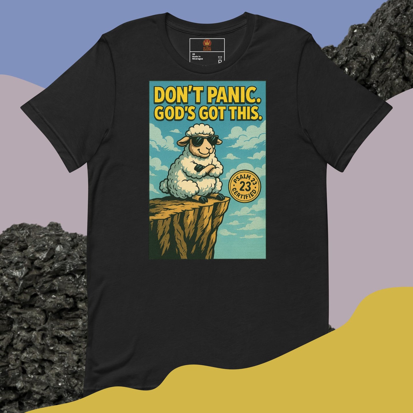 Each Don't Panic God's Got This Graphic Tee is made on-demand, meaning your purchase contributes to reducing overproduction and making thoughtful choices. While it may take a bit longer to reach you, rest assured that every shirt is crafted specifically for you with care.